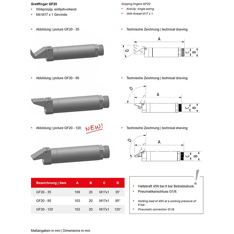 Grijpvinger EW, Ø20mm, 120° grijphoek - GF20-120