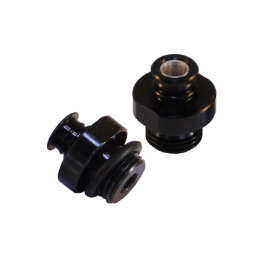 PU-Flex (DUO), 30-55° shore A, licht/donker blauw, met zwart geanodiseerde insteek nippel met O-ring en geintegreerd filter |